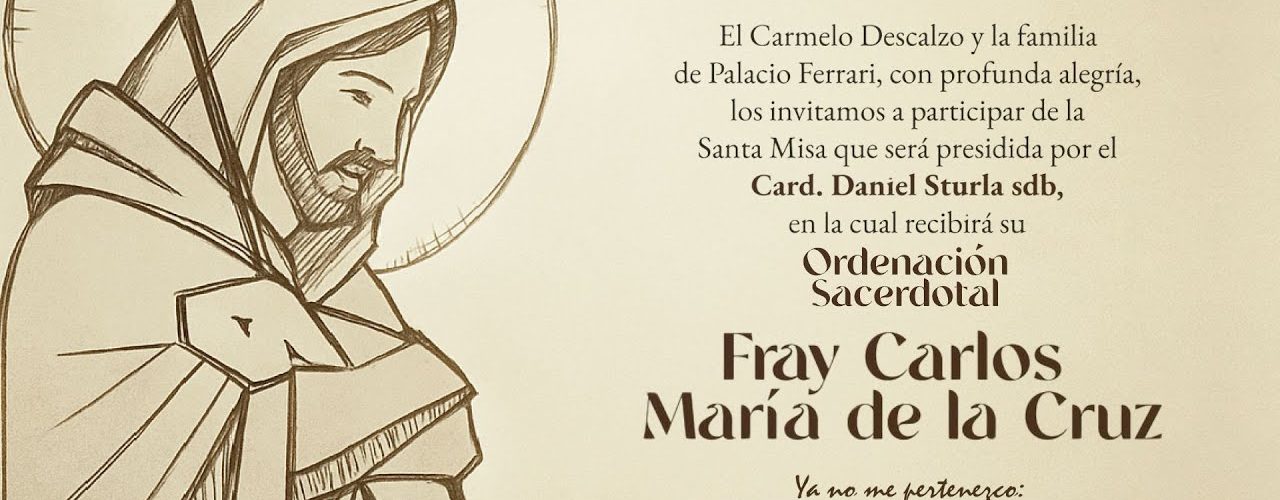 El Carmelo Descalzo y la familia de Palacio Ferrari, con profunda alegría, los invitamos a participar de la Santa Misa que será presidida por el Card. Daniel Sturla sdb, en la cual recibirá su Ordenacion Sacerdotal
