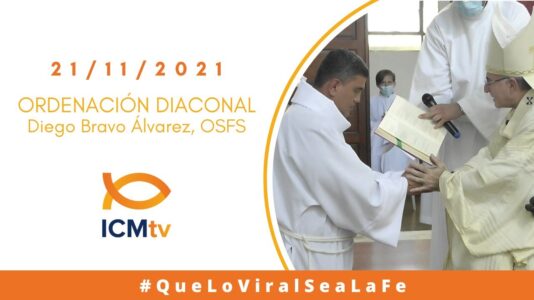 Celebramos la Ordenación Diaconal de Diego Isaac Bravo Álvarez, OSFS.Domingo 21 de Noviembre 2021. Te invitamos a suscribirte al canal 👉 y compartir la Santa Misa a tus contactos. Lectura de la profecía de Daniel 7, 13-14 Yo estaba mirando, en las visiones nocturnas, y vi que venía sobre las nubes del cielo como un Hijo de hombre; Él avanzó hacia...